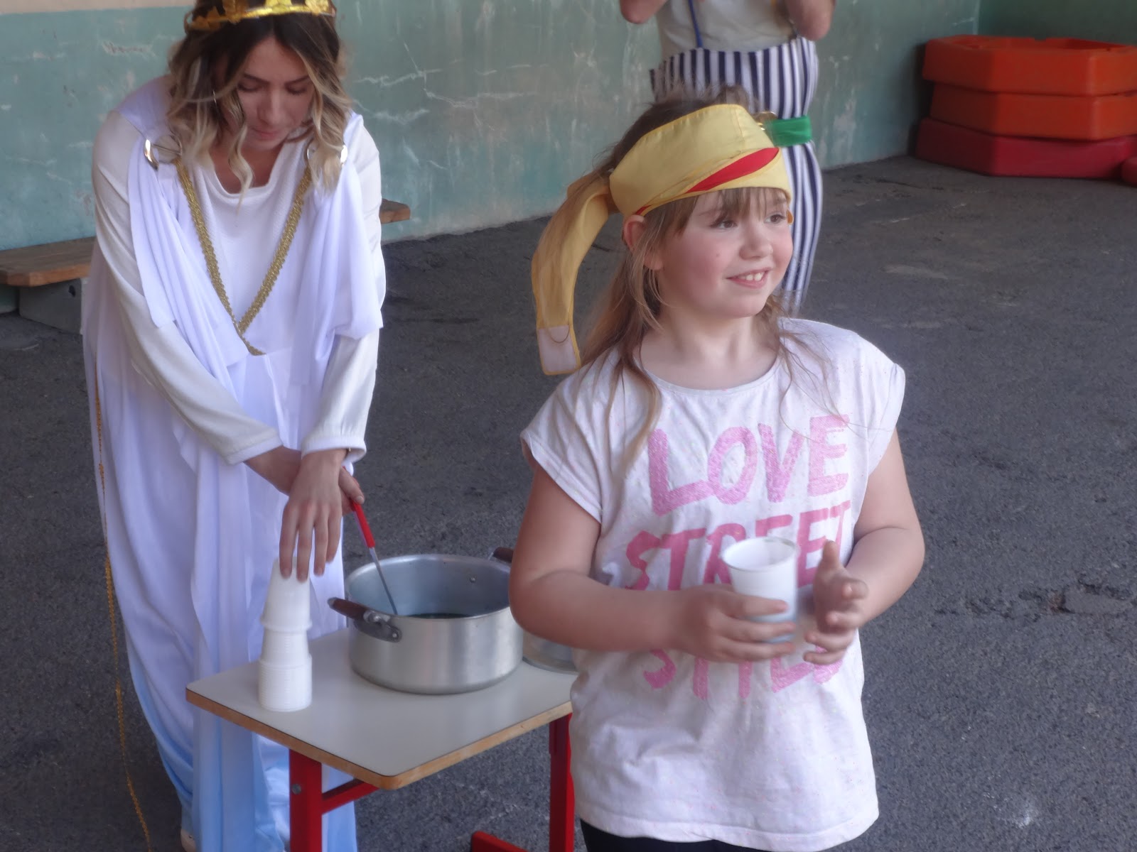 Ce matin nous avons préparé la célèbre potion magique du druide Panoramix, mais nous ne vous dévoilerons pas les ingrédients.... Nous nous sommes aussi entrainés aux épreuves de l'après-midi etr nous avons préparé un apéritif afin de rassasier Obélix. C'était l'anniversaire de Clarisse aujourd'hui, joyeux anniversaire!